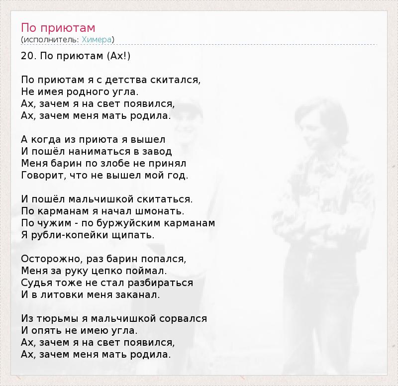 Это интересно:ХимерА (http://www.lastfm.ru/music/ХимерА) – верное название металлической группы. Если текущий исполнитель появляется в твоих чартах, пожалуйста, сделай себе и Last.fm пользу. Исправь теги в своих медиафайлах. Спасибо.=== Биография ===Питерская группа “Химера” начала свое существование как “Депутат балтики”, которую создали осенью 1990 года Эдуард Старков... продолжение