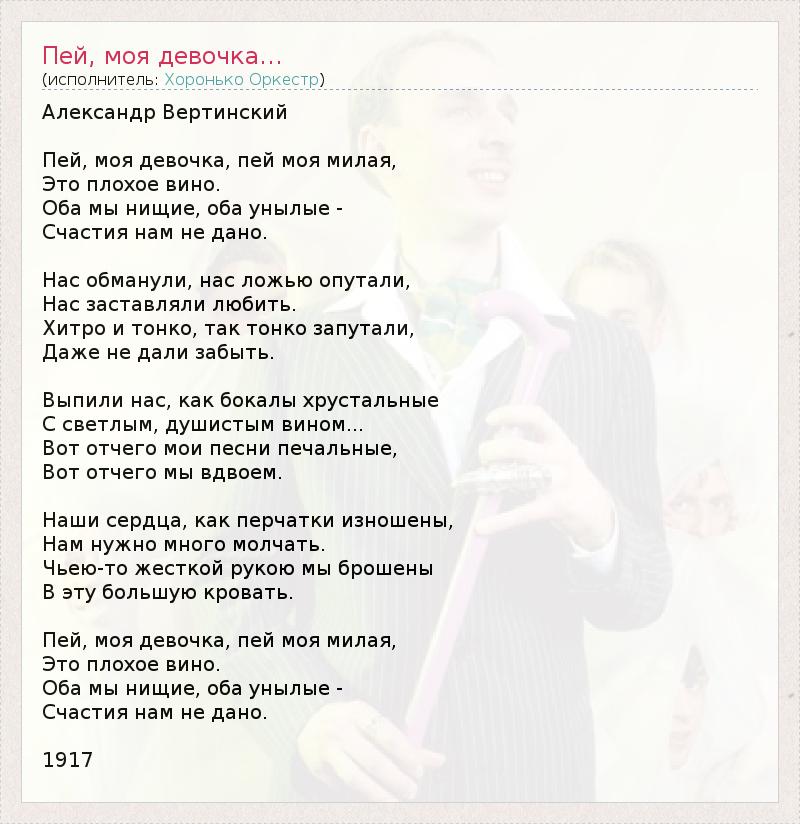 А как ты думаешь, о чем песня "Пей, моя девочка..." ?