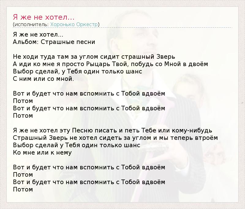 Я же не хотел эту Песню писать и петь Тебе или кому-нибудь