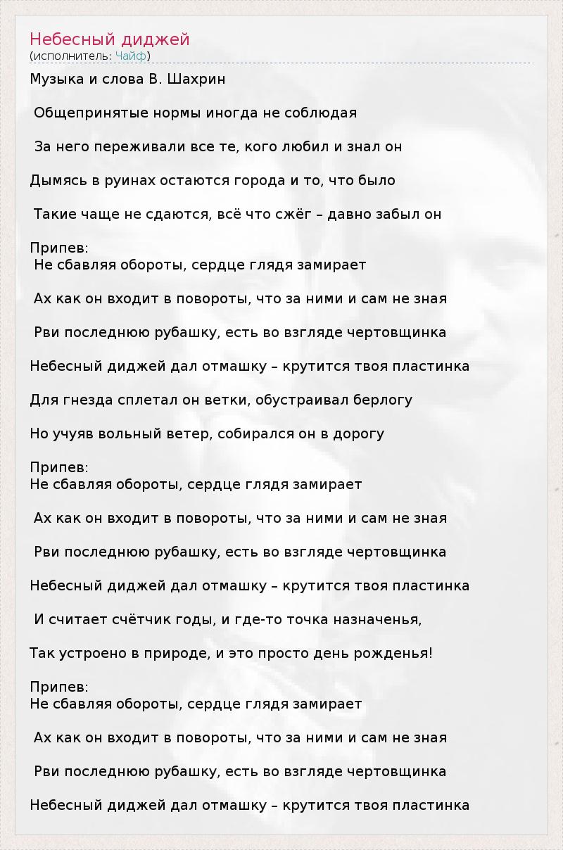 ГлавнаяИсполнителиЧайфНебесный диджей