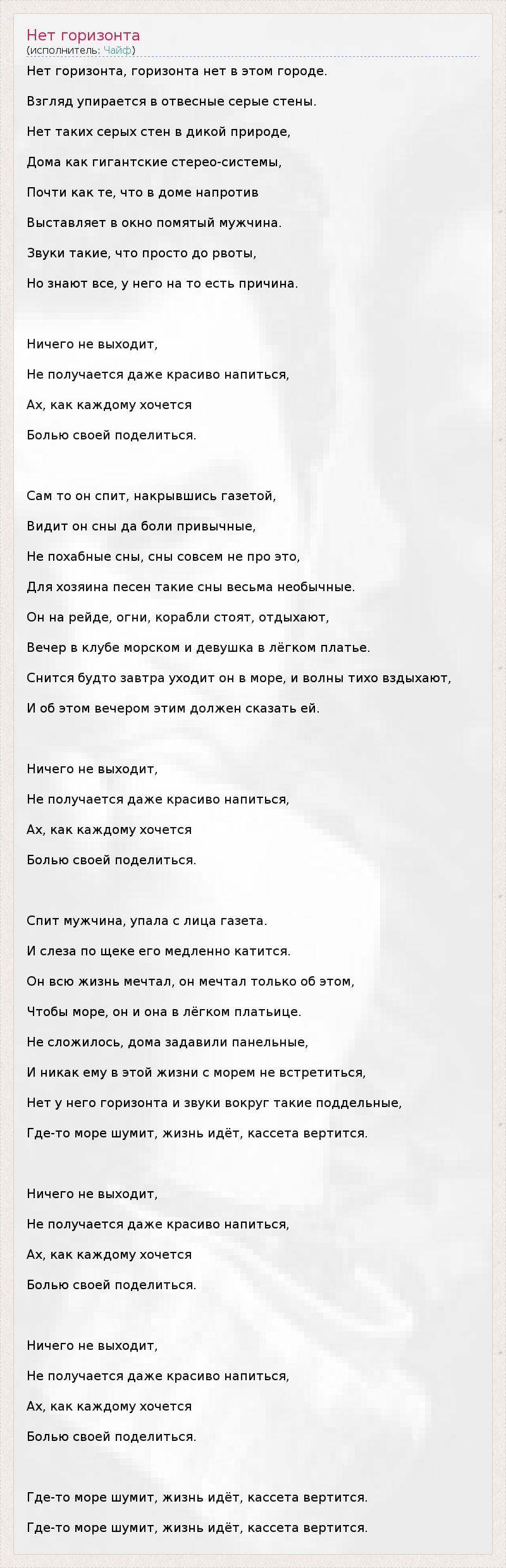 А как ты думаешь, о чем песня "Нет горизонта" ?