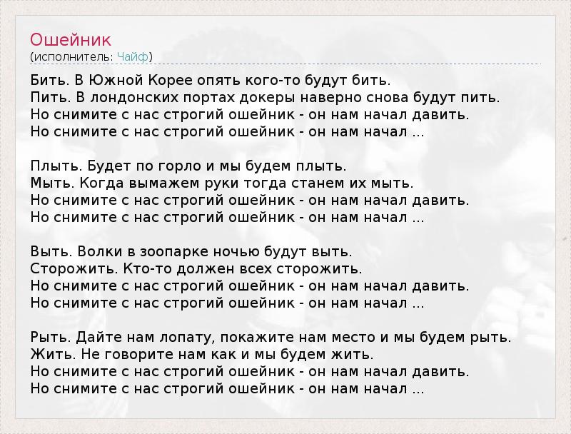 Но снимите с нас строгий ошейник - он нам начал давить.