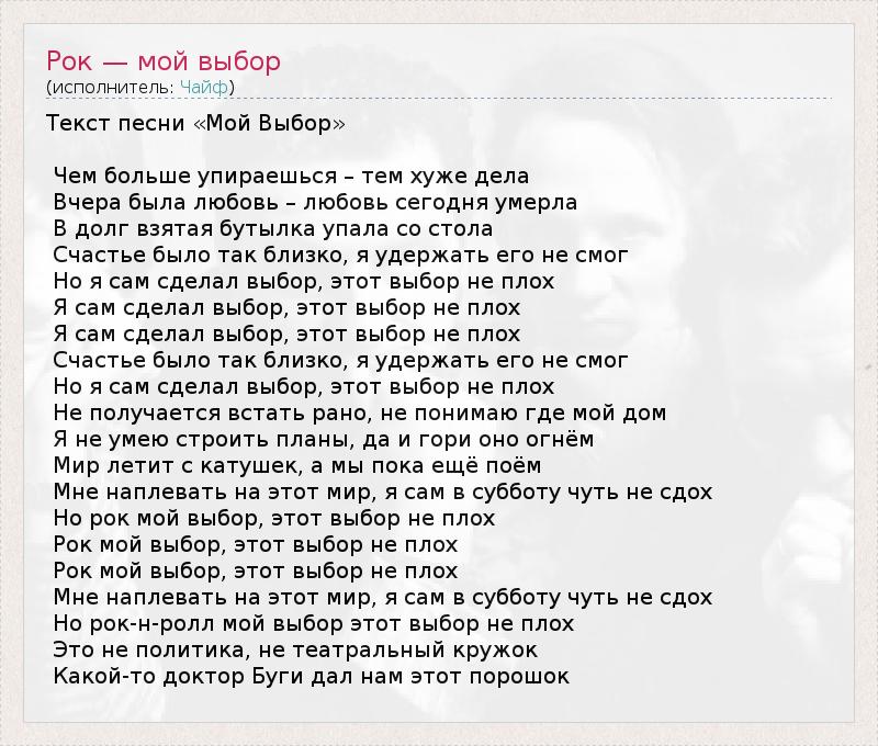 А как ты думаешь, о чем песня "Рок — мой выбор" ?