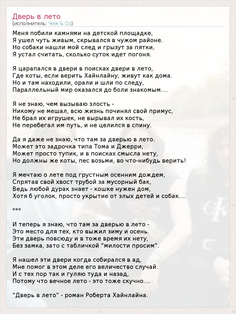 А как ты думаешь, о чем песня "Дверь в лето" ?