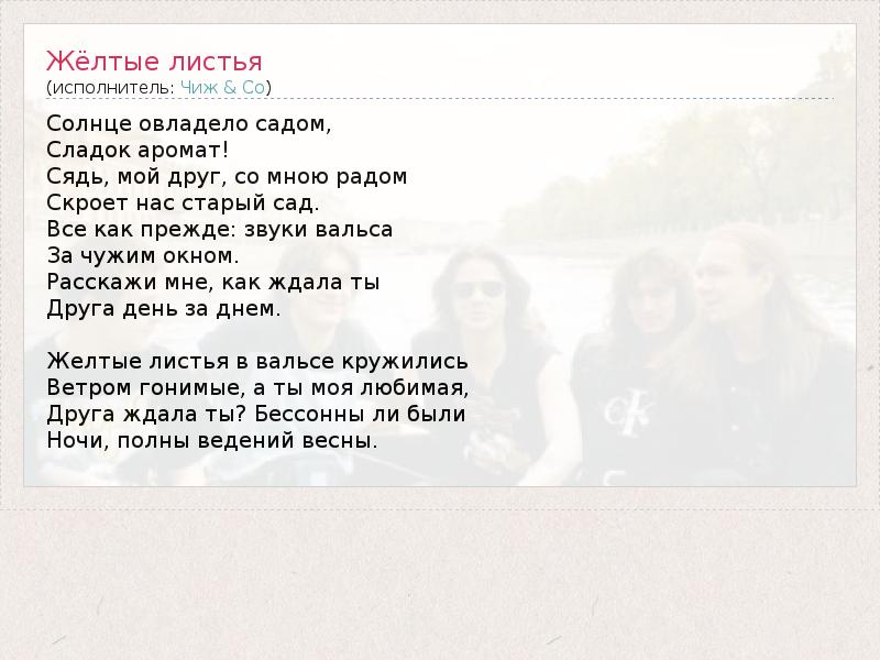 ГлавнаяИсполнителиЧиж & CoЖёлтые листья