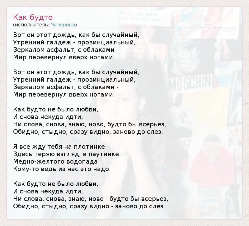 Ни слова, снова, знаю, ново - будто бы всерьез,