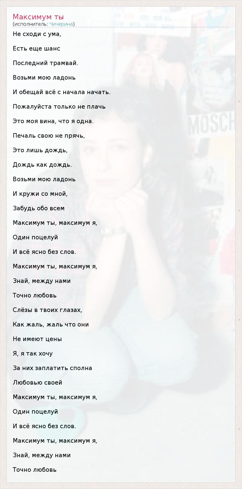 А как ты думаешь, о чем песня "Максимум ты" ?