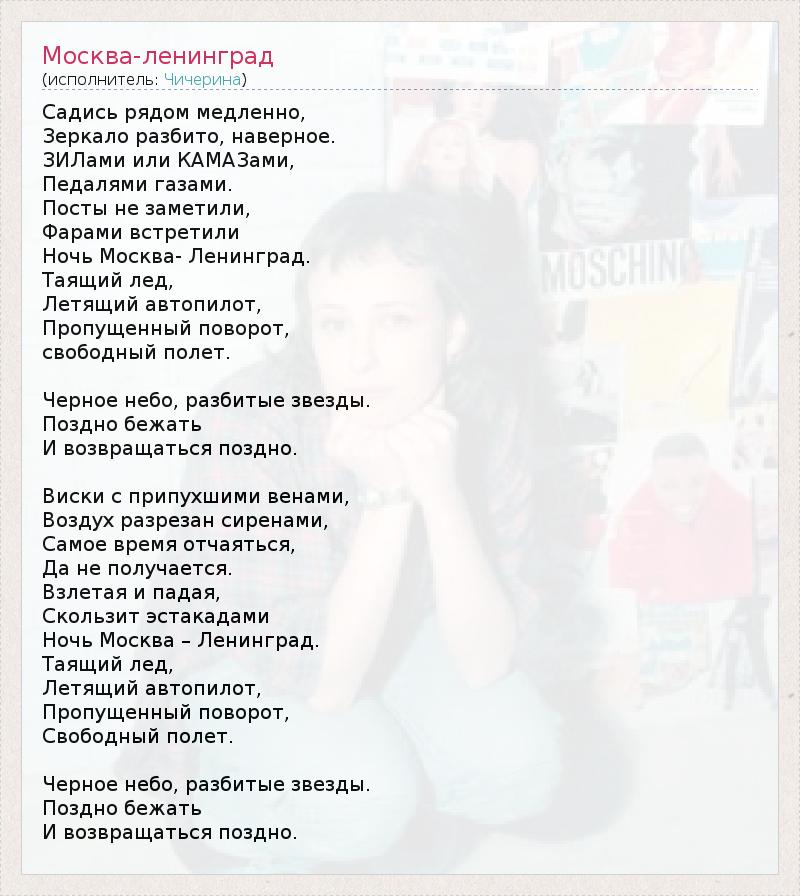 ГлавнаяИсполнителиЧичеринаМосква-ленинград