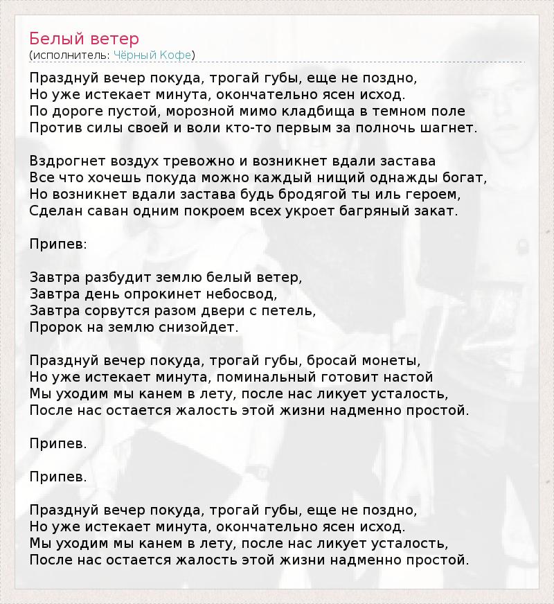 А как ты думаешь, о чем песня "Белый ветер" ?