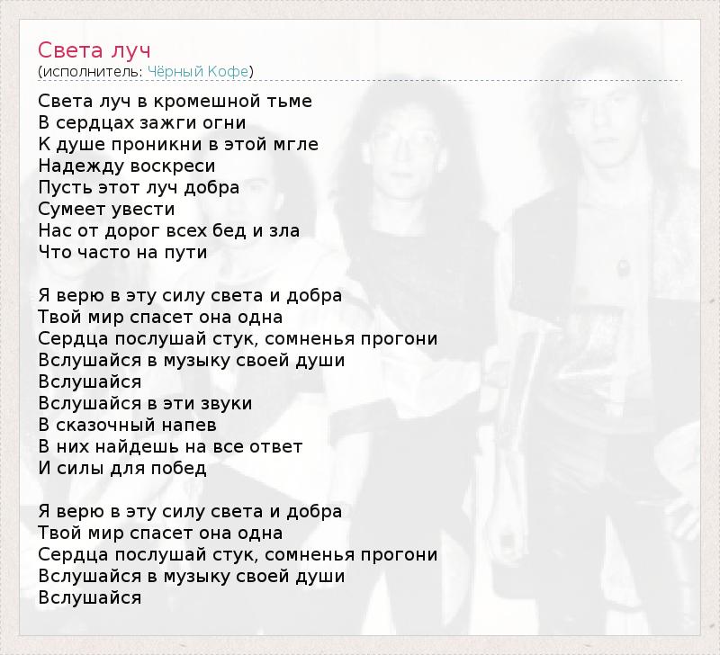 Это интересно:Основатель, вокалист, и гитарист группы — Дмитрий Варшавский. Первой широкой аудиторией «Чёрного Кофе» были военнослужащие. После тура по воинским частям группа попала в список запрещенных рок-коллективов, хотя на практике ее концерты (в отличие, например, от выступлений ДДТ), не запрещали. Первая запись группы была... продолжение