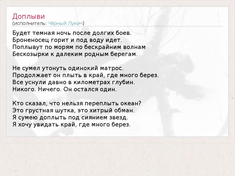 А как ты думаешь, о чем песня "Доплыви" ?
