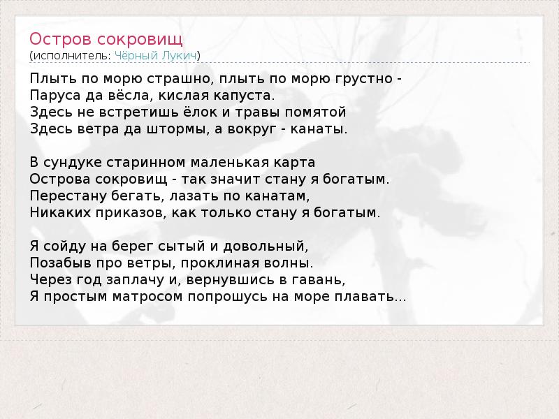 А как ты думаешь, о чем песня "Остров сокровищ" ?