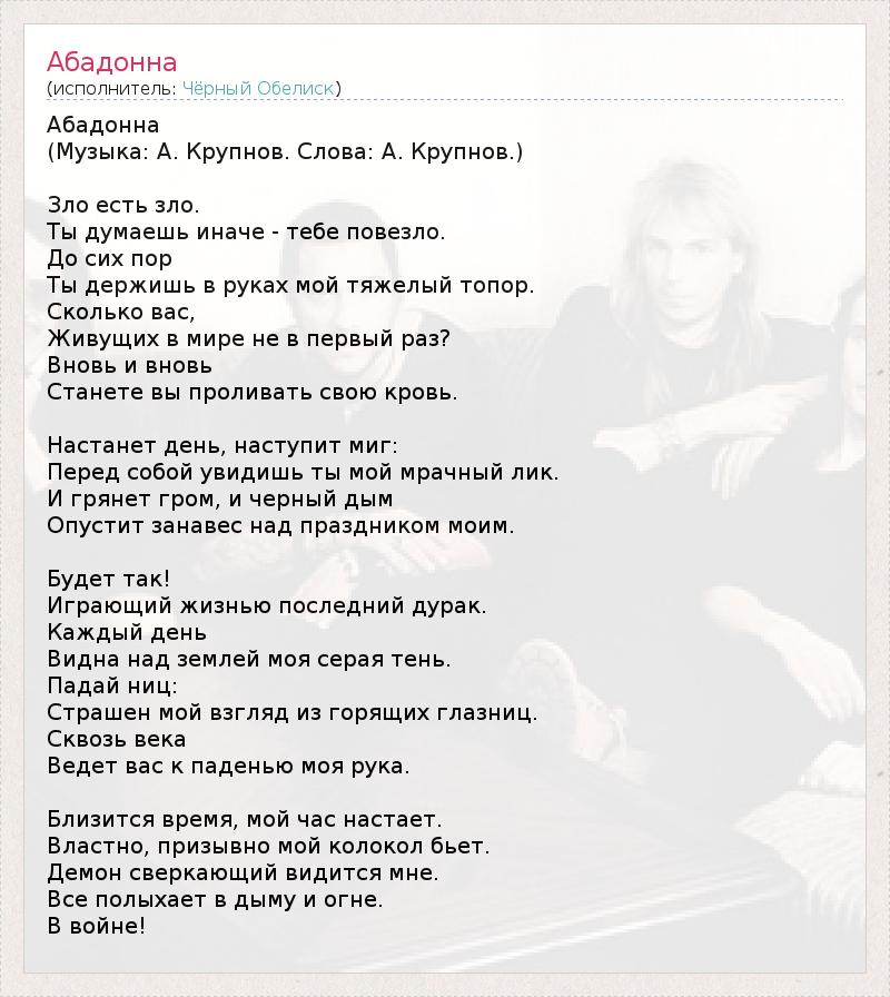 А как ты думаешь, о чем песня "Абадонна" ?