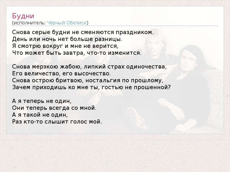 Это интересно:Московская рок-группа ЧЕРНЫЙ ОБЕЛИСК была организована 1 августа 1986 года бас-гитаристом (скрипачом по музыкальному образованию) Анатолием Крупновым на развалинах джаз-рокового коллектива Проспект. Первоначальный состав ОБЕЛИСКА выглядел следующим образом: Анатолий Крупнов... продолжение