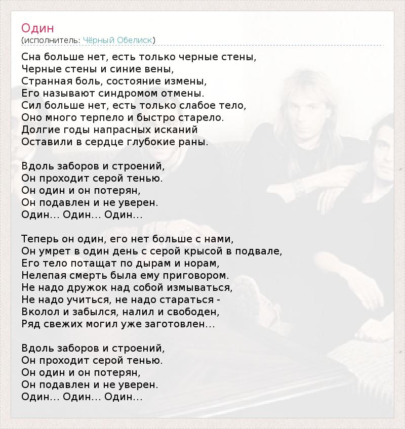Это интересно:Московская рок-группа ЧЕРНЫЙ ОБЕЛИСК была организована 1 августа 1986 года бас-гитаристом (скрипачом по музыкальному образованию) Анатолием Крупновым на развалинах джаз-рокового коллектива Проспект. Первоначальный состав ОБЕЛИСКА выглядел следующим образом: Анатолий Крупнов... продолжение