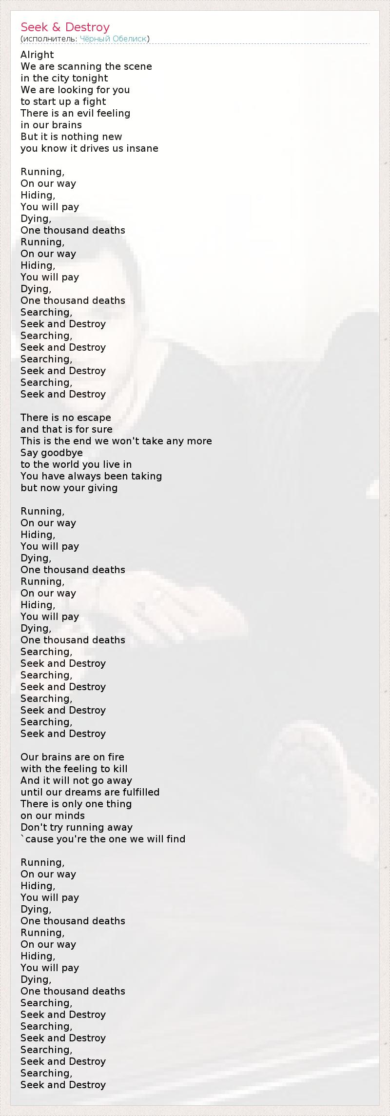А как ты думаешь, о чем песня "Seek & Destroy" ?
