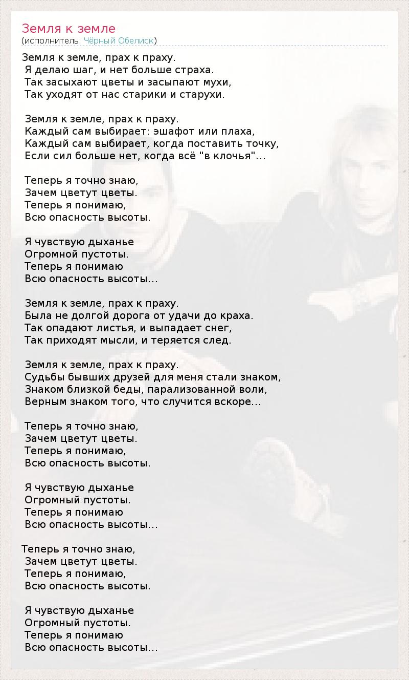 А как ты думаешь, о чем песня "Земля к земле" ?