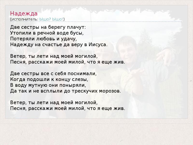 А как ты думаешь, о чем песня "Надежда" ?