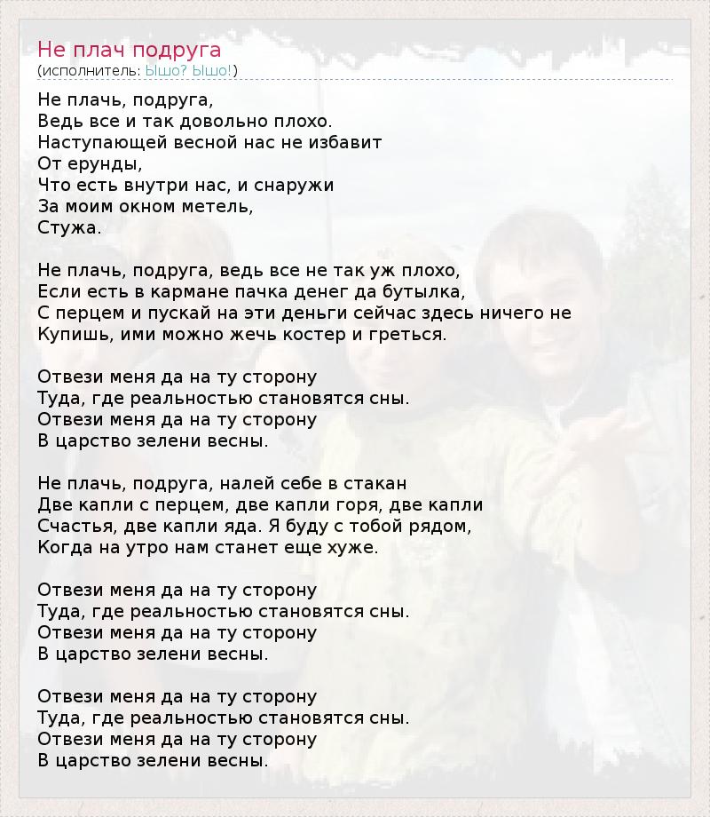 ГлавнаяИсполнителиЫшо? Ышо!Не плач подруга
