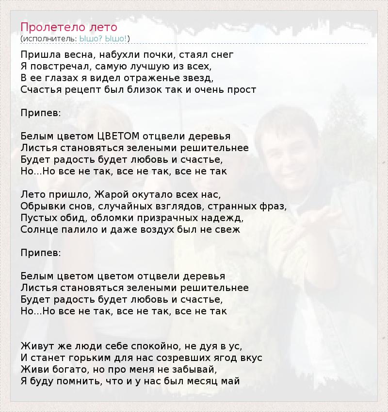 ГлавнаяИсполнителиЫшо? Ышо!Пролетело лето
