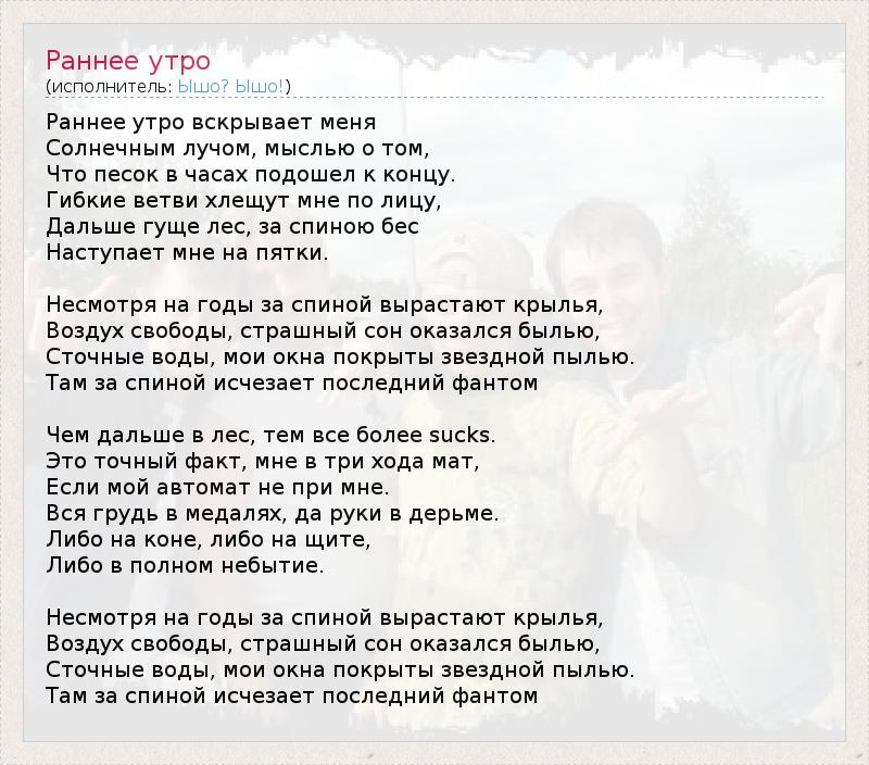 А как ты думаешь, о чем песня "Раннее утро" ?