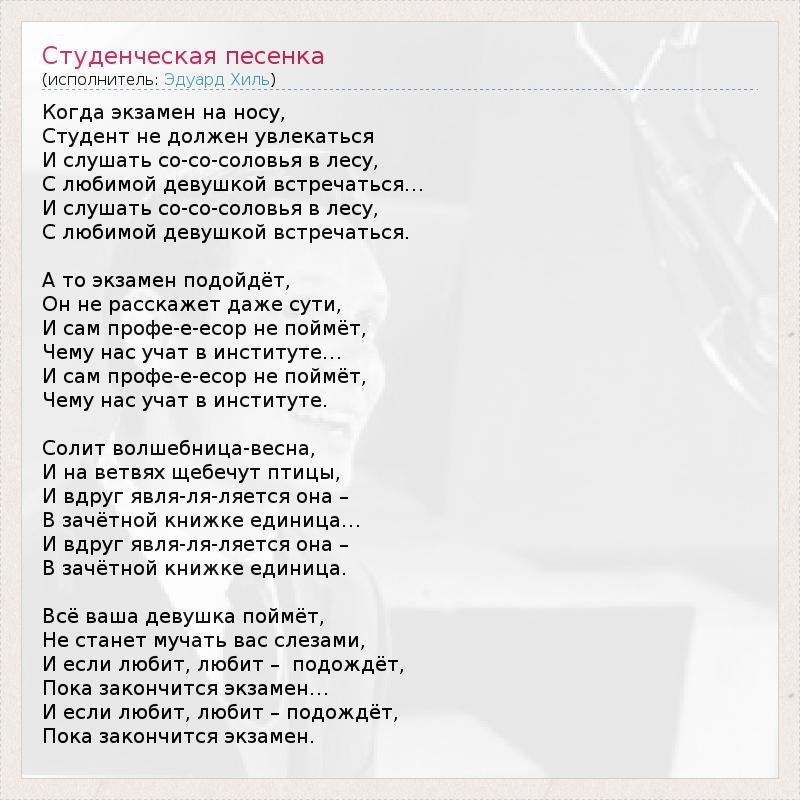 ГлавнаяИсполнителиЭдуард ХильСтуденческая песенка