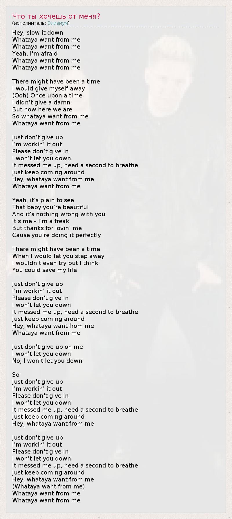 (Whataya want from me)