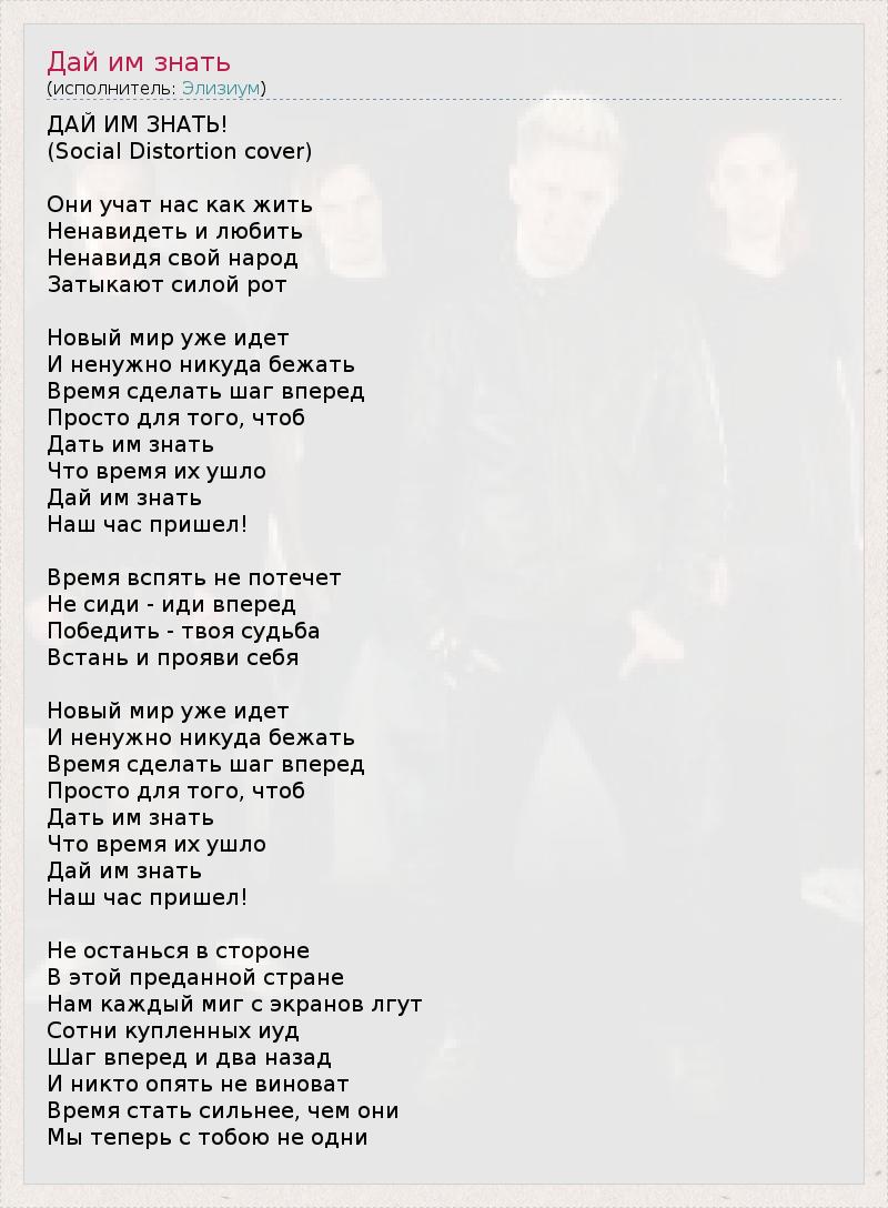А как ты думаешь, о чем песня "Дай им знать" ?