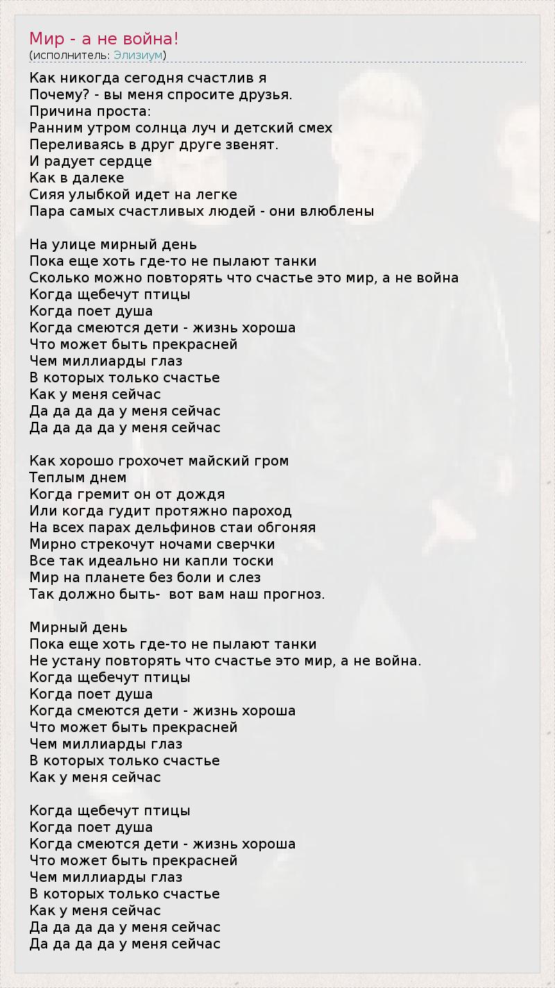 ГлавнаяИсполнителиЭлизиумМир - а не война!