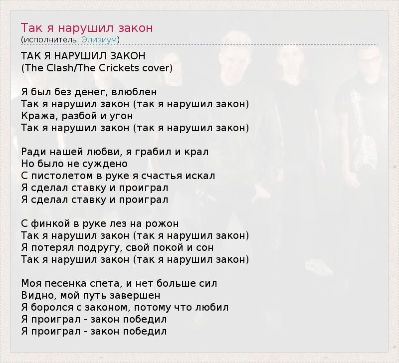 ГлавнаяИсполнителиЭлизиумТак я нарушил закон