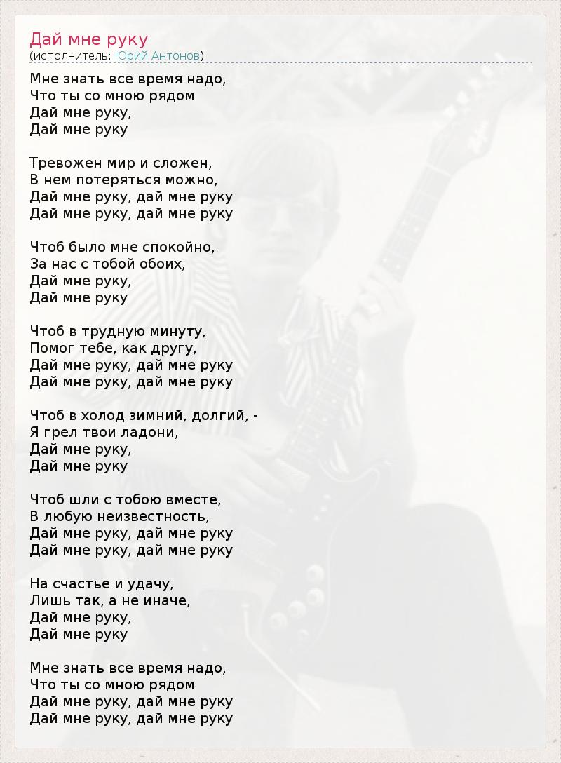 А как ты думаешь, о чем песня "Дай мне руку" ?
