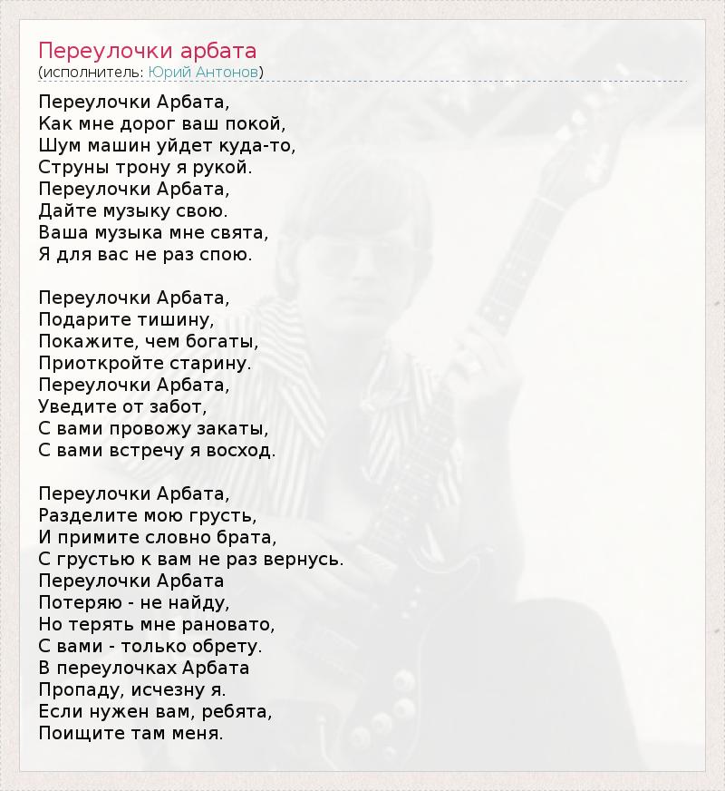 ГлавнаяИсполнителиЮрий АнтоновПереулочки арбата