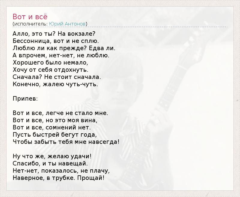 А как ты думаешь, о чем песня "Вот и всё" ?
