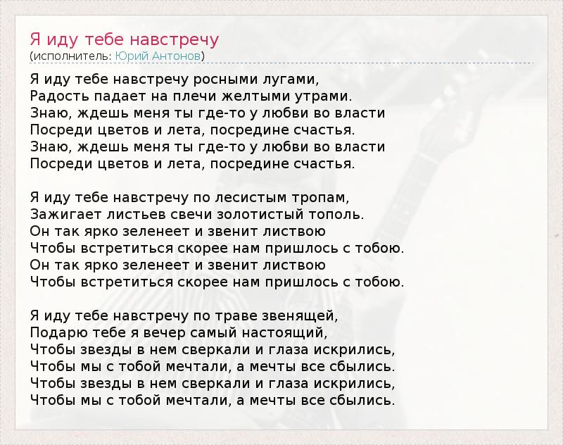 ГлавнаяИсполнителиЮрий АнтоновЯ иду тебе навстречу
