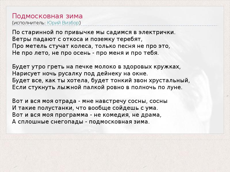 А как ты думаешь, о чем песня "Подмосковная зима" ?