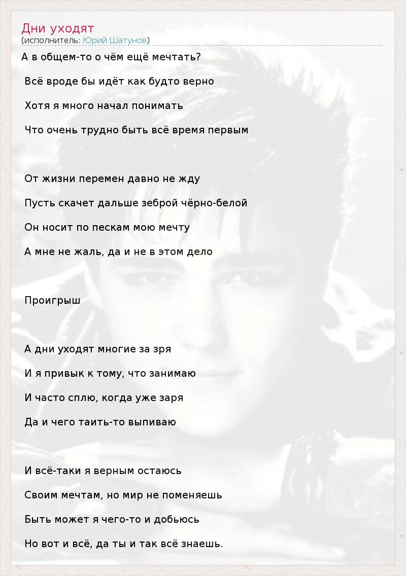 А как ты думаешь, о чем песня "Дни уходят" ?