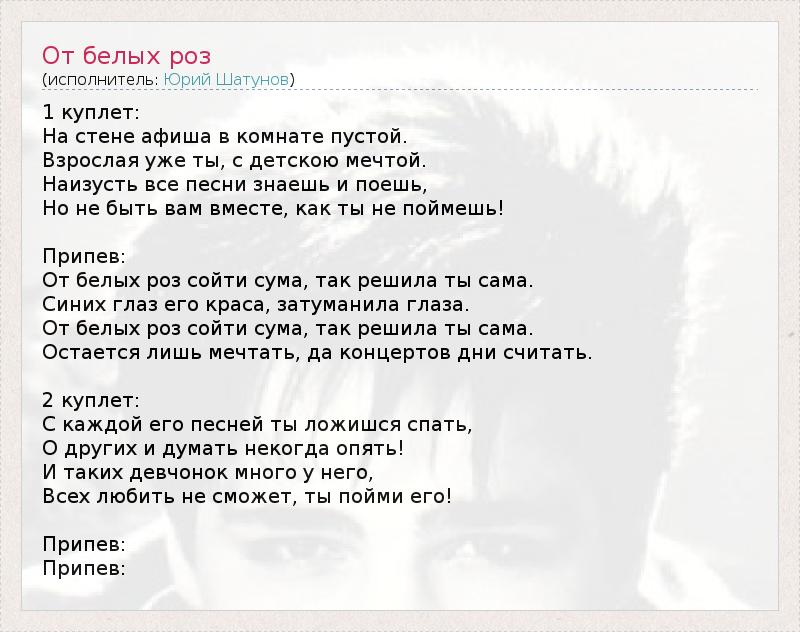 А как ты думаешь, о чем песня "От белых роз" ?