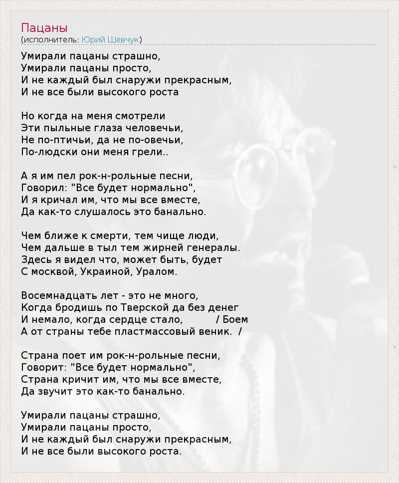 Это интересно:Детство и юностьЮрий Шевчук родился 16 мая 1957 года в поселке Ягодное Магаданской области в семье школьных учителей. Национальная принадлежность: по матери (Фаина Акрамовна Гариева) татарин (прадед был мулла), отец украинец. Основным увлечением мальчика до шести лет было рисование, которое он продолжил после переезда семьи в 1964 году в Нальчик. Параллельно учебе в школе и прежнему увлечению,... продолжение
