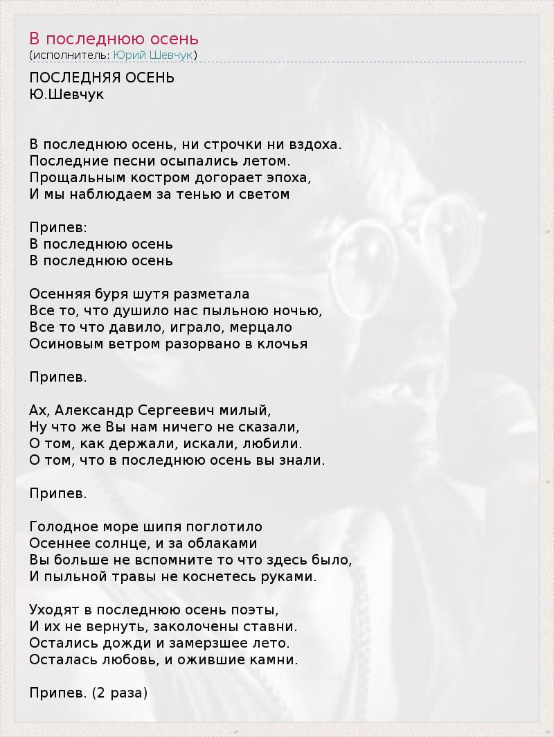 ГлавнаяИсполнителиЮрий ШевчукВ последнюю осень