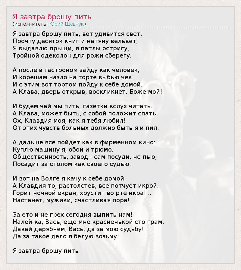 ГлавнаяИсполнителиЮрий ШевчукЯ завтра брошу пить