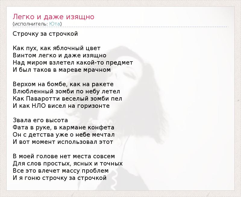 ГлавнаяИсполнителиЮтаЛегко и даже изящно