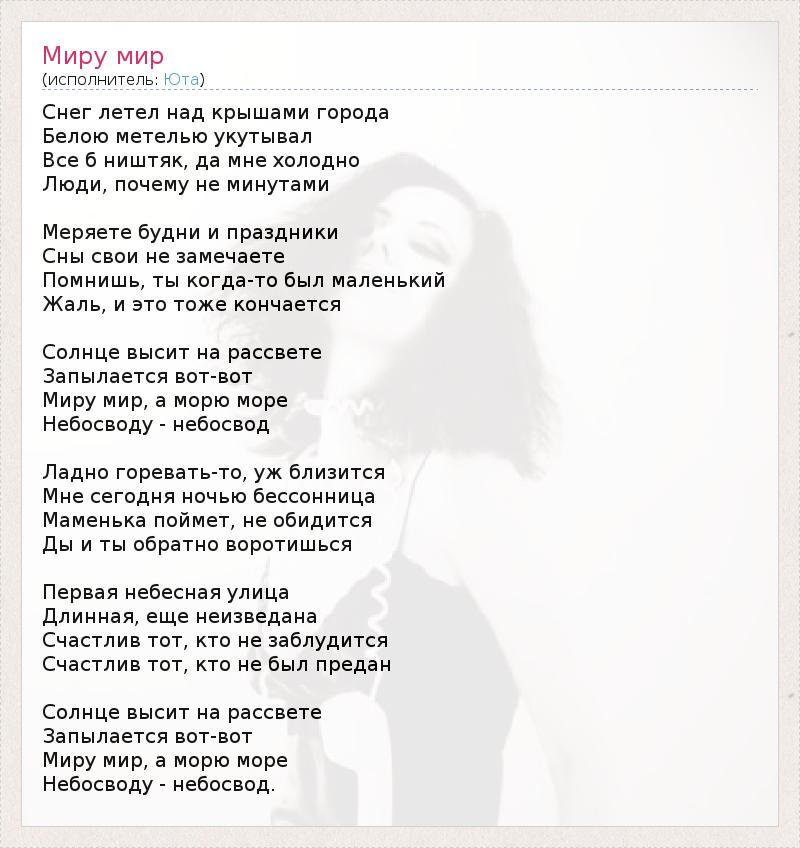 Это интересно:Юта — российский поп-рок исполнитель.1999 - 2012Группа возникла в 1999, после чего её состав часто менялся; неизменным участником группы оставалась только её солистка Юта (настоящее имя Анна Семина, родилась 20 июня 1979 в Екатеринбурге).4 июня 2012 года в своём «Живом журнале» Юта заявила о прекращении существования группы и начале сольной карьеры под именем Анна Герцен. Биография:... продолжение