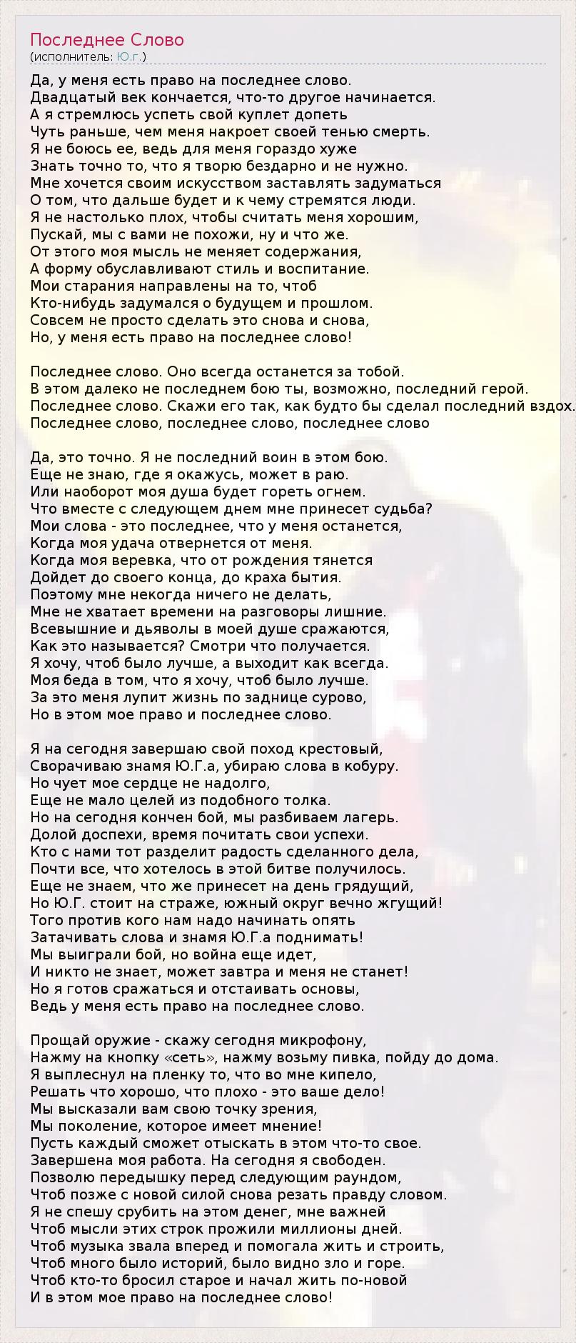 ГлавнаяИсполнителиЮ.г.Последнее Cлово