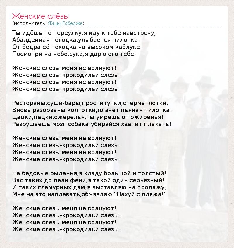 А как ты думаешь, о чем песня "Женские слёзы" ?