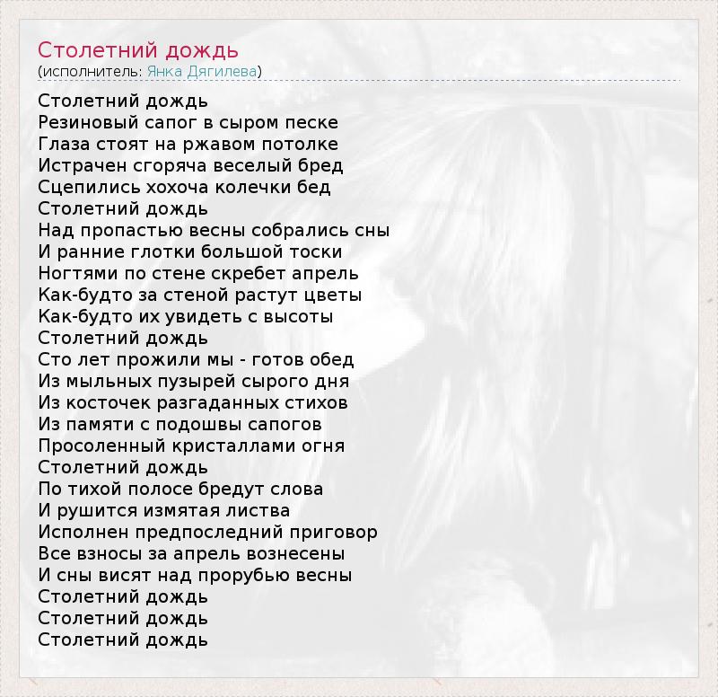 А как ты думаешь, о чем песня "Столетний дождь" ?
