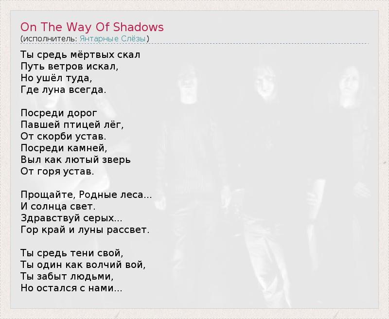 А как ты думаешь, о чем песня "On The Way Of Shadows" ?