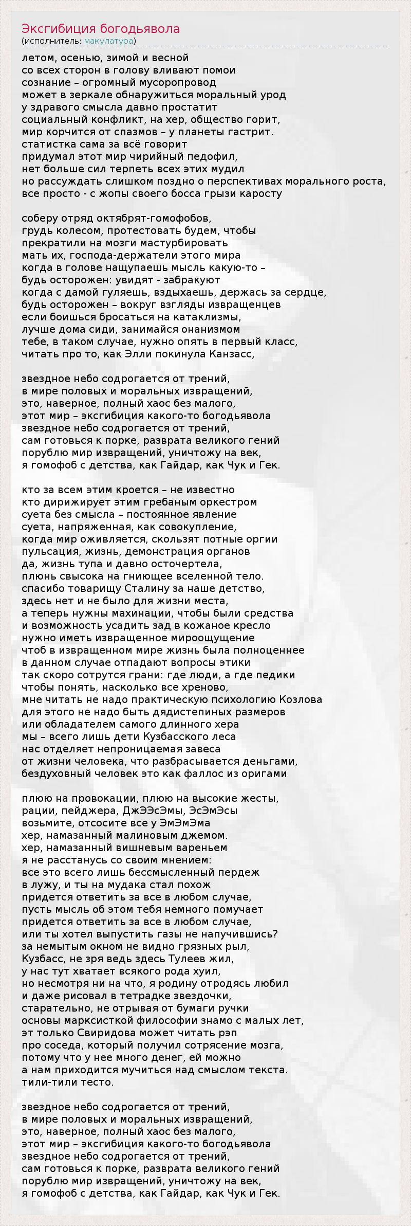 А как ты думаешь, о чем песня "Эксгибиция богодьявола" ?