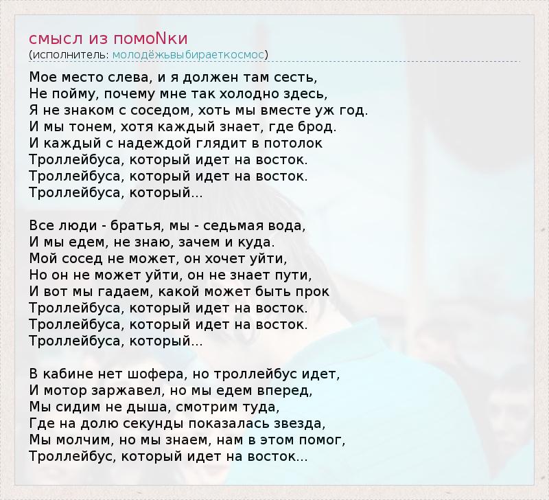 А как ты думаешь, о чем песня "смысл из помоNки" ?