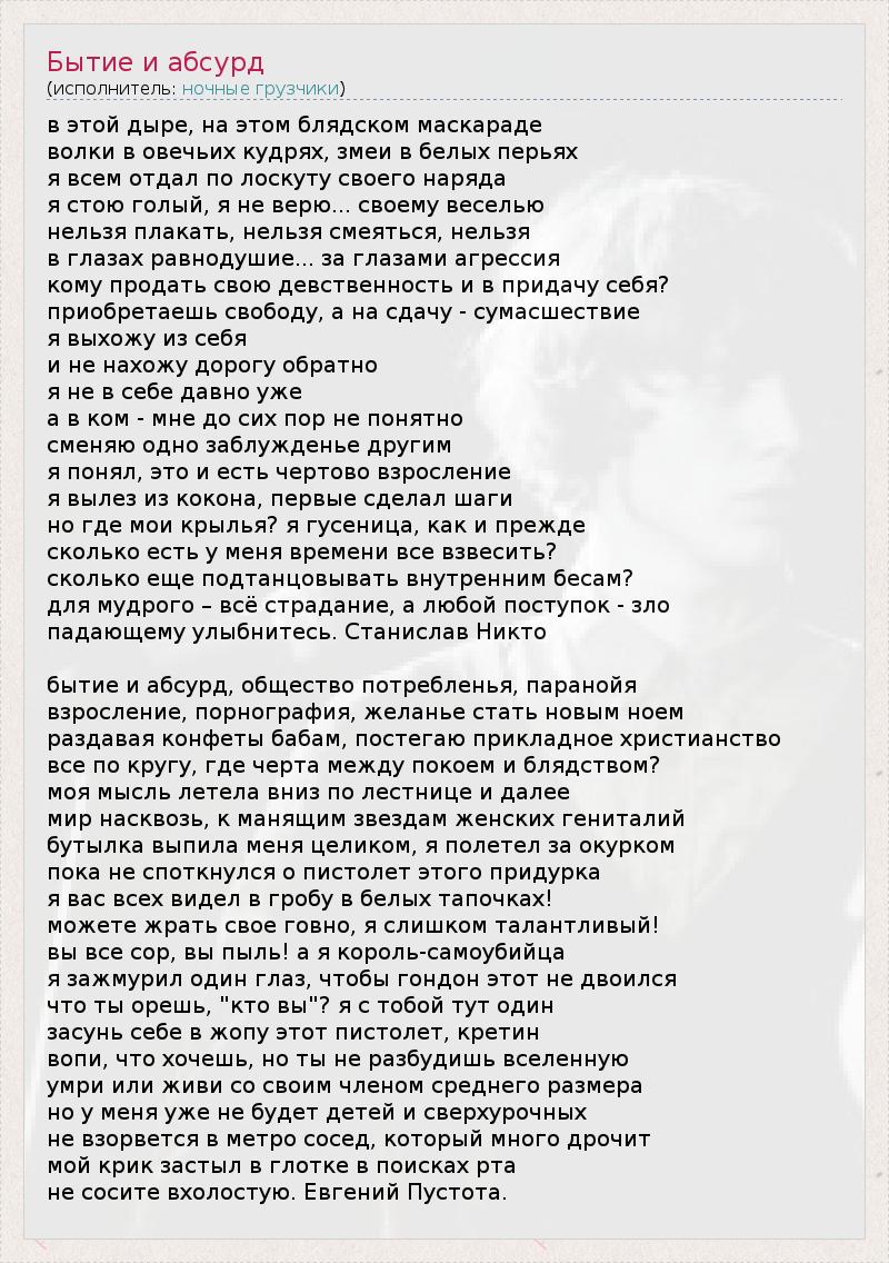 А как ты думаешь, о чем песня "Бытие и абсурд" ?