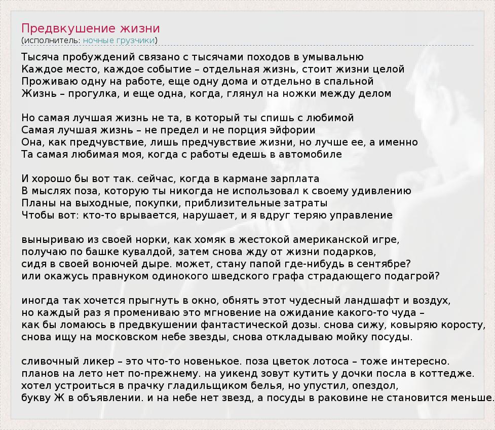 А как ты думаешь, о чем песня "Предвкушение жизни" ?
